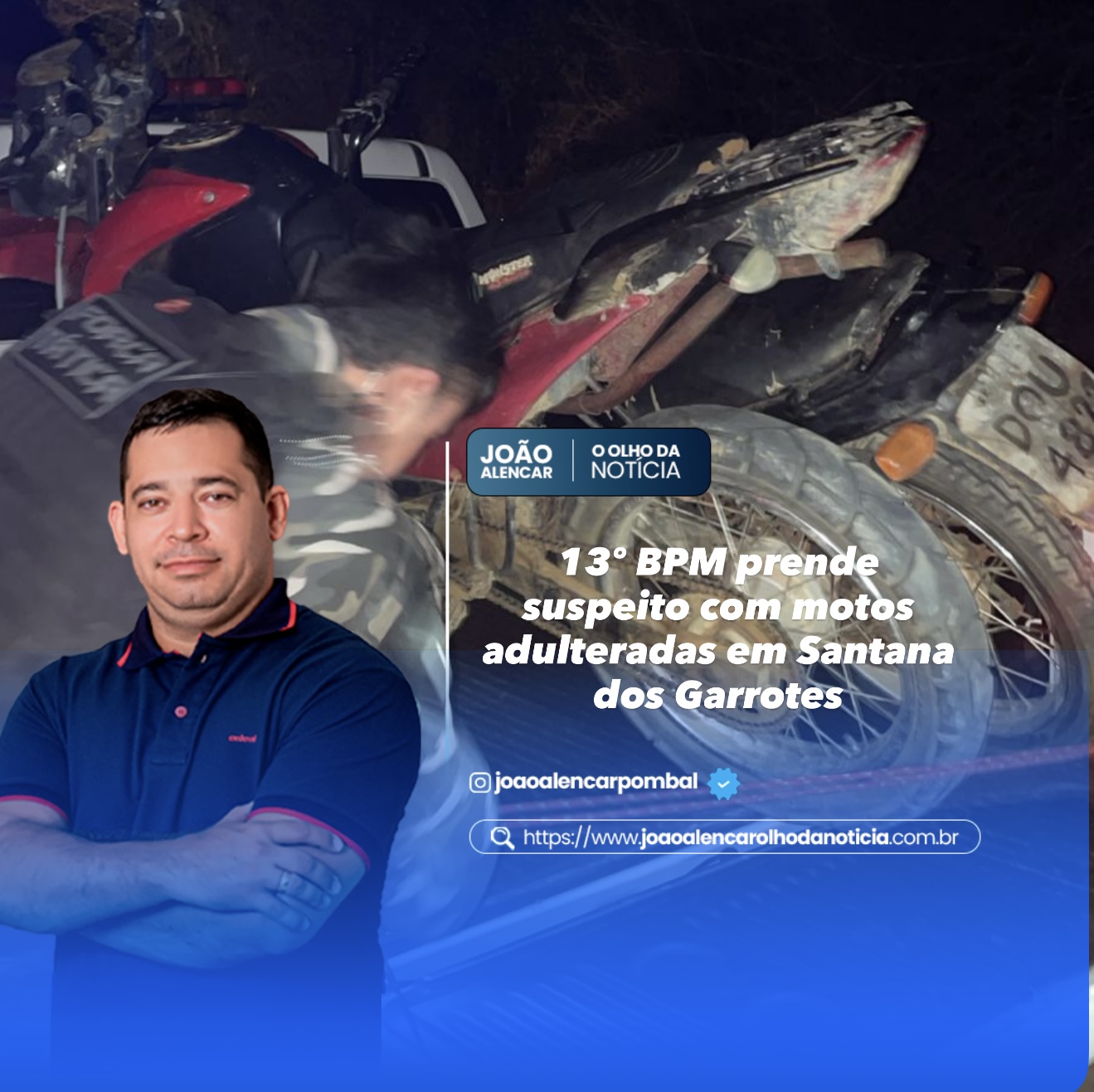 Em 9 de setembro de 2025, policiais do 13º BPM – Guardiões do Vale do Piancó realizaram uma prisão na cidade de Santana dos Garrotes, durante rondas determinadas pelo comandante Major c.lima