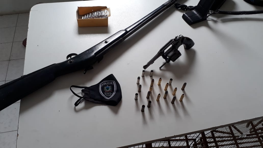 Na manhã desta segunda-feira, 29 de junho, policiais civis de Pombal em conjunto com policiais civis de Itaporanga e de Coremas apreenderam armas de fogo e munições no bairro dos Pereiros.
