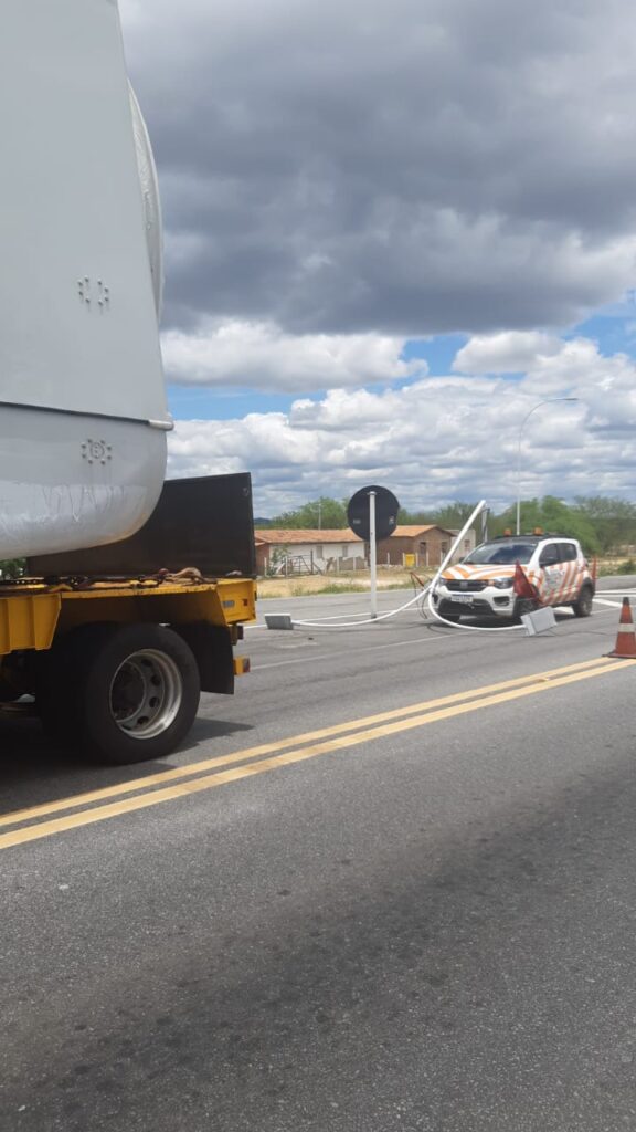 Na manhã deste domingo (21), um poste de iluminação da Unidade Operacional da PRF em São Mamede foi danificado por uma colisão de uma carreta transportando carga indivisível de componente de uma usina eólica pelas dimensões que ultrapassam os níveis normais de largura e altura. Essa combinação colidiu com poste e arrastou os fios da rede elétrica iluminação noturna da Unidade Operacional da PRF em São Mamede. O responsável pelo transporte foi acionado para corrigir os danos, retirar o poste danificado e isolar a rede elétrica. Ao mesmo tempo, ele se comprometeu a consertar o poste danificado restituir o patrimônio público. Essa ocorrência se assemelha outra ocorrida no início desse mês, quando um caminhão colidiu com dois postes de iluminação da unidade de São Mamede. Após ser localizado e identificado o mesmo se prontificou a corrigir o dano causado. O conserto já está sendo realizado com restabelecimento dos dois postes atingidos.