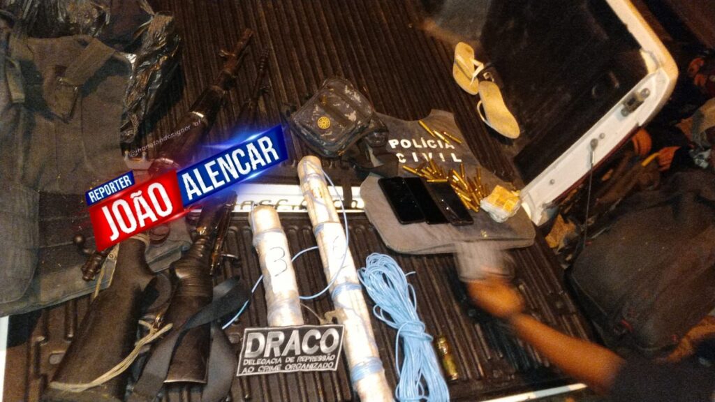 No veículo interceptado e que tombou, os policiais teriam encontrado dois fuzis, explosivos e munição calibre 762.