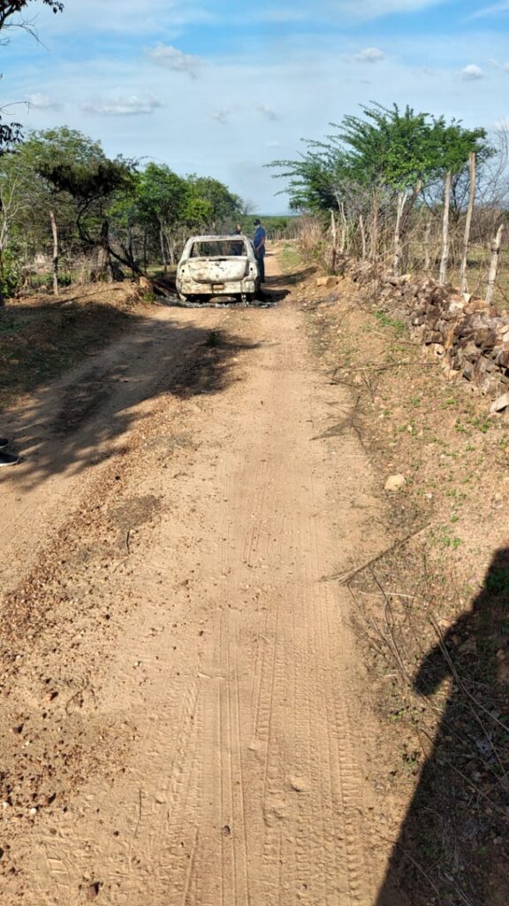 Pouco tempo depois, o carro em que ele estava, um Corsa, pertencente ao seu pai, foi encontrado queimado em uma estrada de terra, no sítio Pau de Leite, na saída para Paulista (foto abaixo).