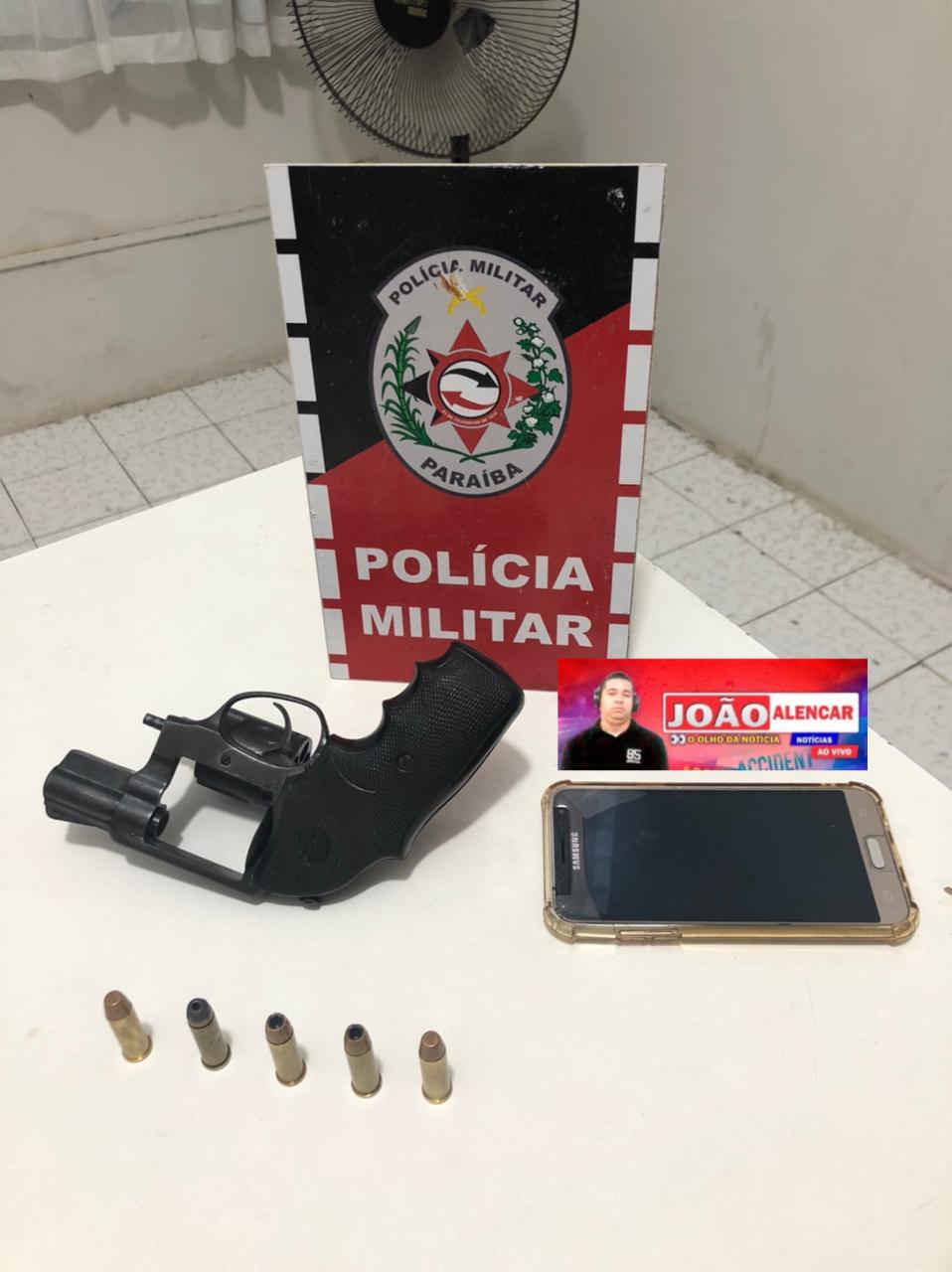 Imediatamente a guarnição policial se deslocou até o local informado e procedeu uma busca minuciosa, onde foi constatada a veracidade do fato, sendo encontrado um revólver cal 38 com cinco munições intactas.
