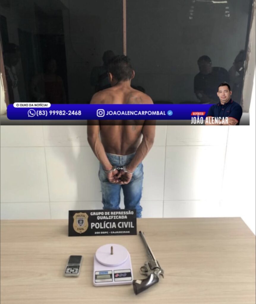 A Polícia Civil de Cajazeiras, por meio do GTE,na manhã de hj (22/11/23) prendeu em flagrante um indivíduo de iniciais G.C. S o qual realizou um assalto a uma farmácia no centro de cajazeiras . O crime teria ocorrido por volta das 07hs quando o referido indivíduo chegou no estabelecimento comercial acima descrito munido de um revólver e anunciou o roubo . A Polícia Civil está atenta à criminalidade e não medirá esforços para combatê-la . A população pode prestar informações pelo 197 que terá sua identidade preservada. Fonte João Alencar