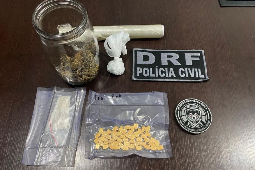 Foram apreendidos dezenas de comprimidos de ecstasy e também uma quantidade em pó de MDMA, considerada uma das drogas mais potentes e perigosas já desenvolvidas em laboratório.