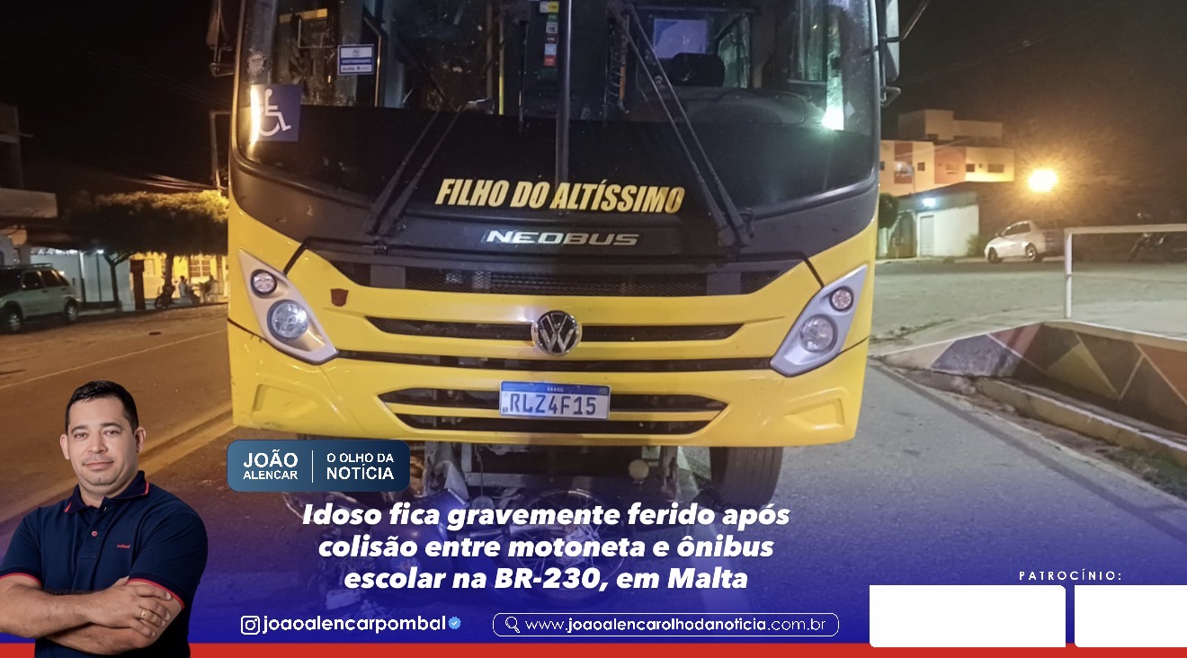 Idoso fica gravemente ferido após colisão entre motoneta e ônibus escolar na BR-230, em Malta
