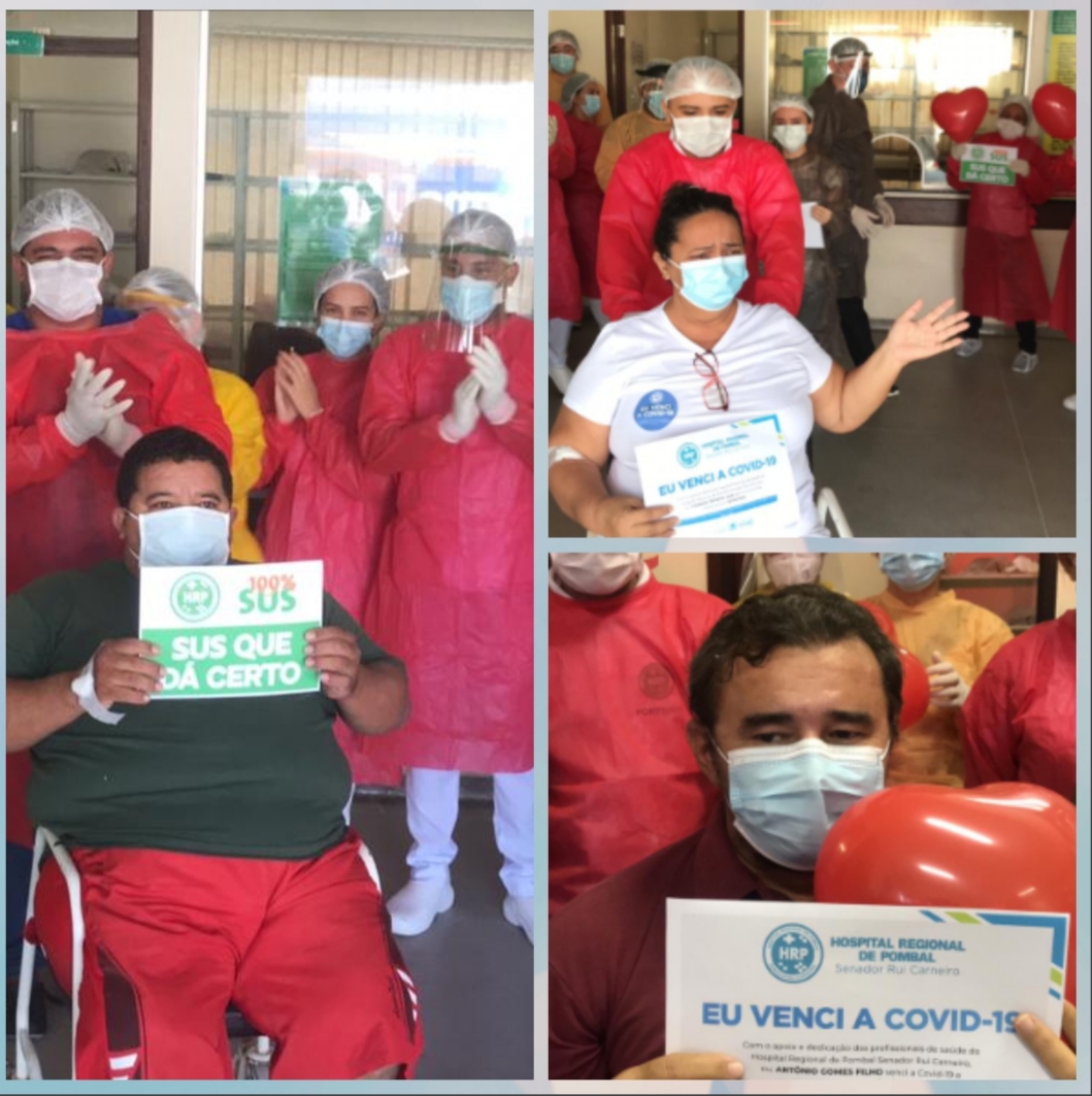 Receberam alta na tarde desta segunda–feira (25), no Hospital Regional de Pombal (HRP), mais três pacientes curados da covid-19. Ivoneide Teixeira de Lima, de 50 anos, passou cinco dias; e Antônio Gomes Filho, de 51 anos, passou vinte dias. Ambos estiveram internados na UTI e vieram da cidade de Sousa. Também recebeu alta Inácio Nascimento Santos, de 40 anos, da cidade de Uiraúna, após cinco dias internado na enfermaria da unidade hospitalar.