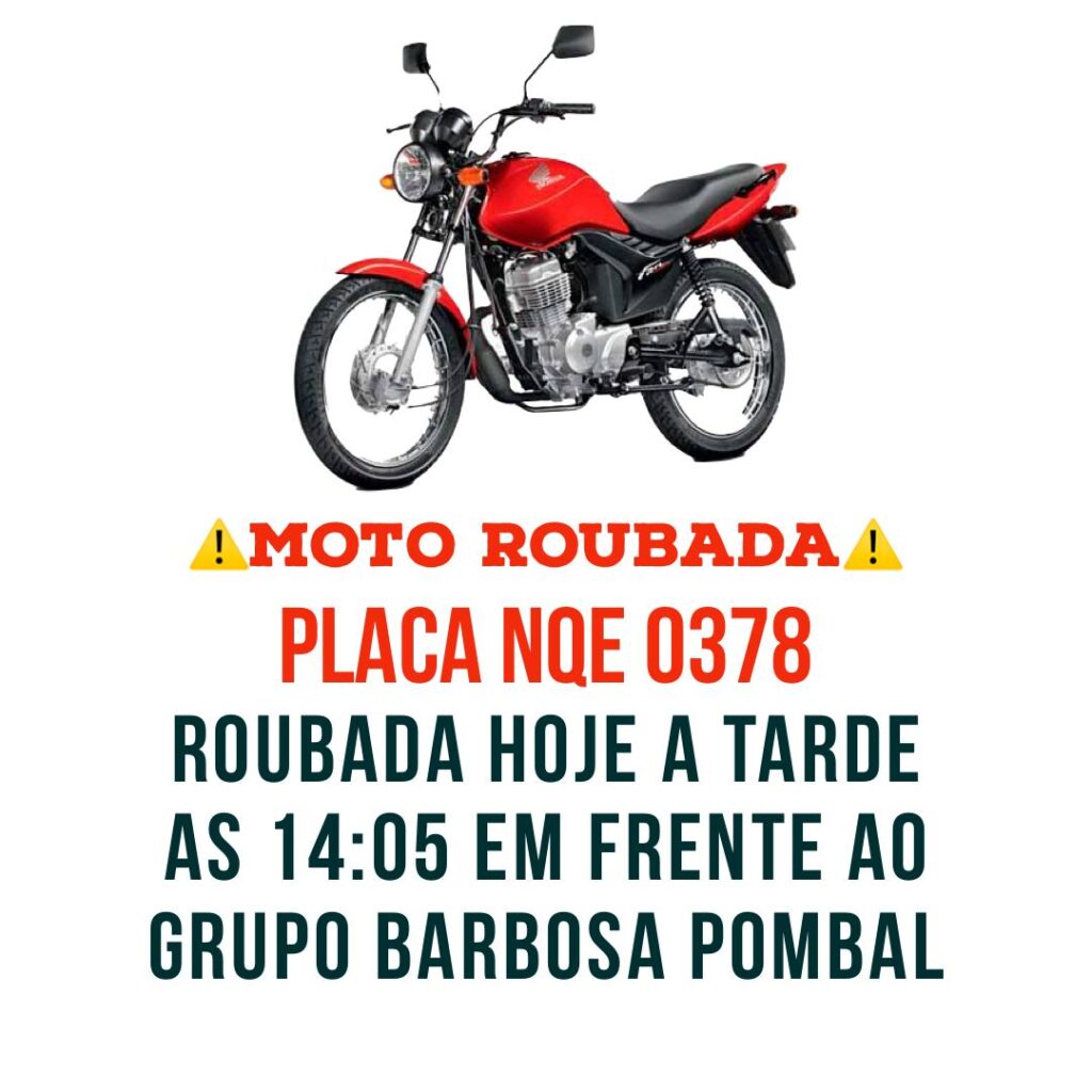 O veículo furtado se trata de uma motocicleta Honda CG, cor vermelha, placa NQE0378.