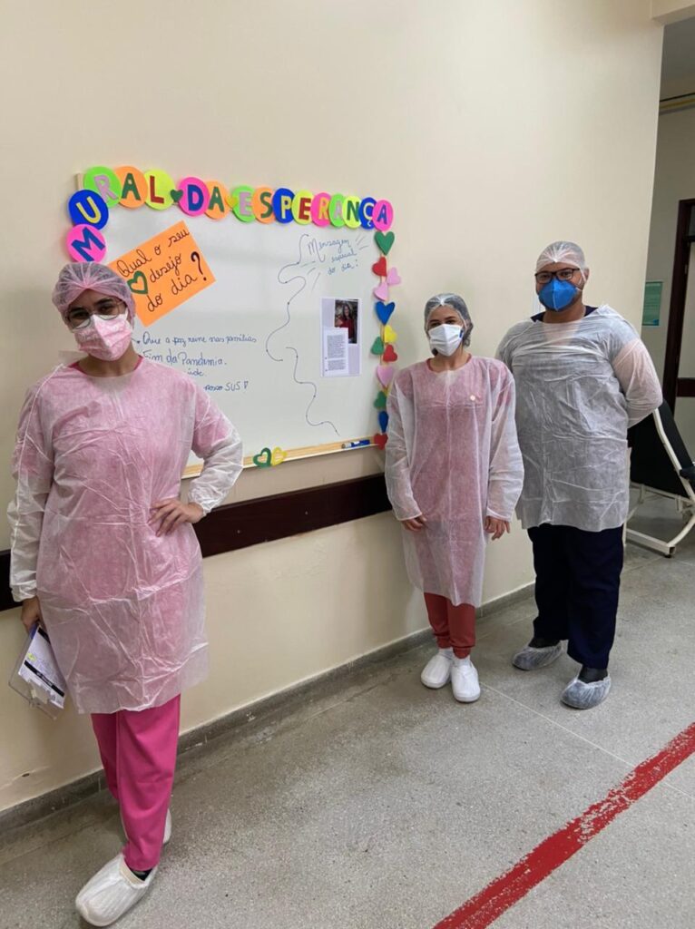 Nesses últimos dias iniciou-se no Hospital Regional de Pombal mais uma ação de humanização, o “Mural da Esperança” do projeto “Cuidar de Quem Cuida”. Idealizado pela equipe multiprofissional da Área Covid-19 da instituição, o mural visa trazer mais interação e motivação entre toda a equipe.
