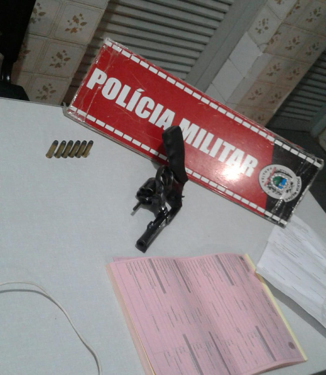 Por volta das 23 h, durante a *Operação Cidade Segura*, no bairro das Populares, dois indivíduos numa moto sem placa, perceberam as ações policiais e numa atitude suspeita foragiram do local sendo perseguido por nossas guarnições (Fiscal de Dia e FR) no percurso os suspeitos abandonaram um volume que mais tarde foi localizado pelas guarnições tratando-se de revólver Cal 38, municiado com seis munições. Os indivíduos conseguiram fugir da ação da PM momentaneamente, no entanto as diligências continua no sentido de localizá-los. A arma e as munições foram apresentadas na Delegacia de PC.fonte policial militar pombal