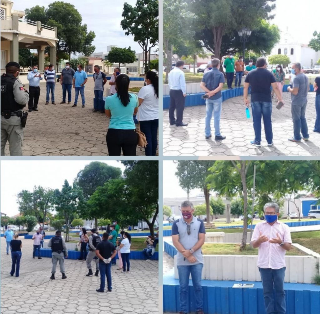 O momento aconteceu na Praça do Centenário envolvendo integrantes da Vigilância Sanitária, CDL, Secretaria Municipal de Saúde, Ação Social, Caixa Econômica Federal, Lotérica, Secretários Municipais, Polícia Militar, Paróquia do Bom Sucesso e Rádio Bom Sucesso FM.