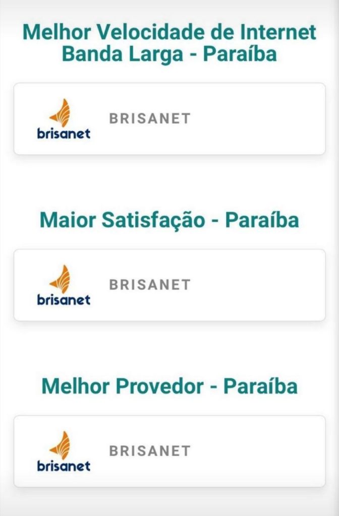 Em 2020 a Brisanet venceu nas 3 categorias do prêmio nos estados do Ceará, Paraíba e Rio Grande do Norte. Além disso, nossa empresa também venceu em pelo menos uma das categorias em várias cidades nordestinas.