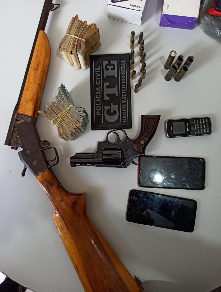 Durante as diligências policiais, quatro armas de fogo, maconha, cocaína e dinheiro foram apreendidas nos alvos da operação.