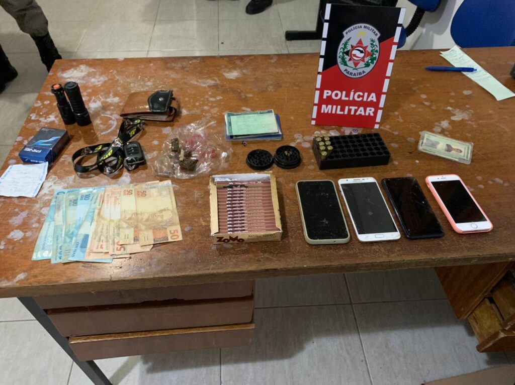 Policiais Militares do 13° Batalhão, quando em rondas na Cidade de Diamante avistaram quatro indivíduos em um veículo Honda HRV, cor vermelha, placas QFV 8203, em atitude suspeita e que ao tentar realizar a abordagem estes desobedeceram a ordem de parada da guarnição e empreenderam fuga em direção a cidade de Boa Ventura, quando as guarnições de apoio que partiram da cidade de Itaporanga, conseguiram realizar a abordagem . No interior do veículo estavam os Srs. Jones Estandislau, vulgo “ Alemão”, Marcelo Rodrigues de Araújo , José Marcelino Leite Júnior e a Sra. Lidiane Alfredo da Silva. Em posse dos suspeitos.