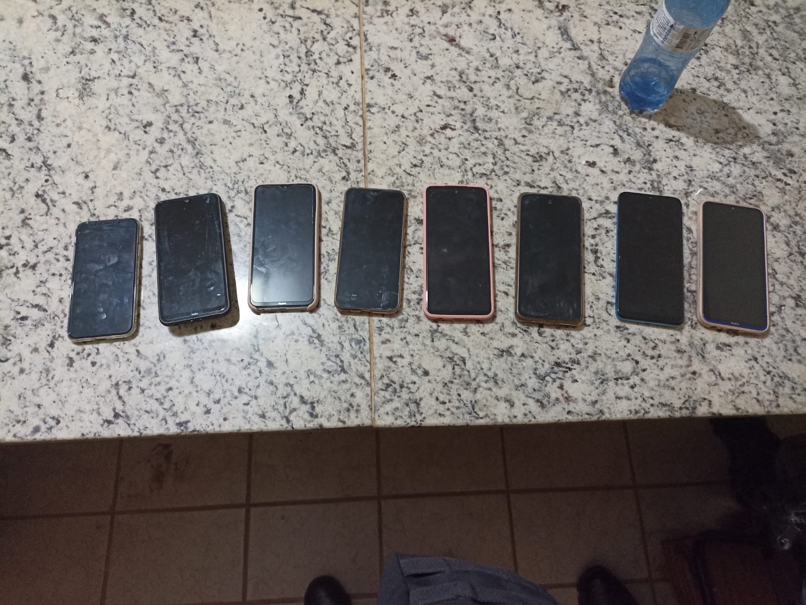 A Guarnição foi solicitada para atender ocorrência de roubo na cidade e no decorrer das diligências conseguiu localizar oito aparelhos smartphones que tinham sido roubados. Os suspeitos de terem cometido os crimes conseguiram fugir. A Polícia Militar solicita que quem tiver informações, ligue 190 ou 197 e denuncie. A denúncia pode ser feita de forma anônima.