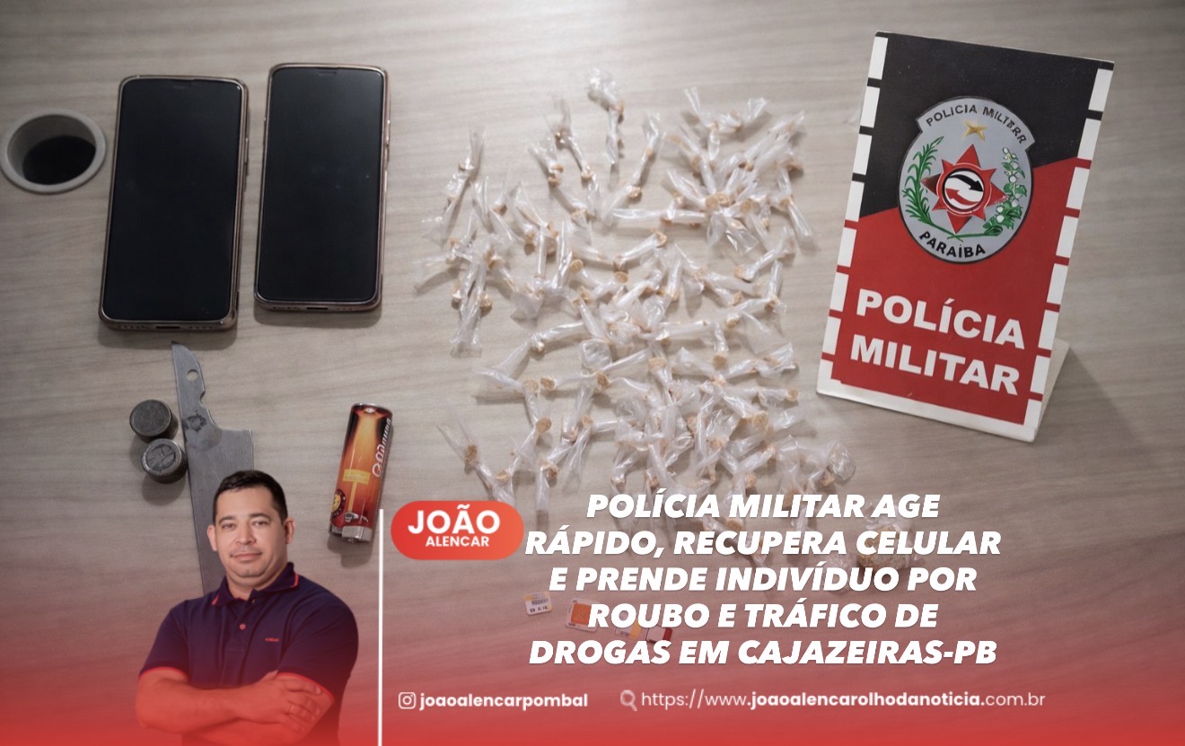 Nesta quarta-feira, 14 de janeiro, por volta das 21h, a Polícia Militar, por meio da Equipe Águia 04 do 3° Esquadrão ROTAM, realizou a prisão de um homem por roubo e tráfico de drogas, em ação rápida na cidade de Cajazeiras.