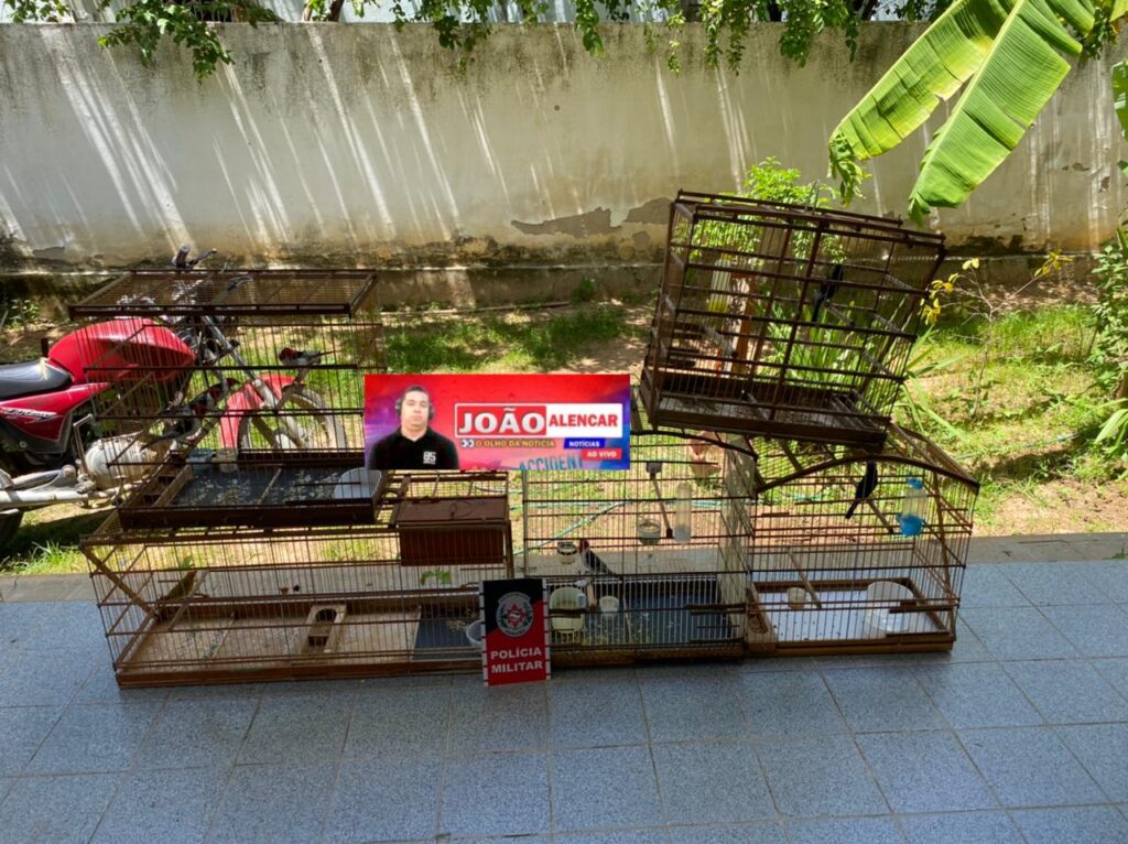 Os policiais receberam um denúncia de que havia diversos pássaros engaiolado numa residência em Pombal.