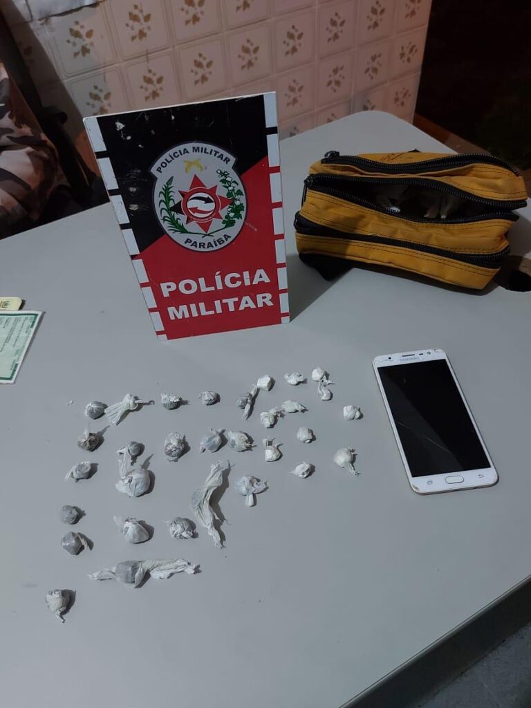 Policiais Militares da 3ª CEPMotos/BEPMotos, durante andamento da “Operação Previna-Se” em Pombal-PB apreenderam um adolescente em conflito com a lei de 17 anos, bem como 12 porções de substância análoga à cocaina, 19 porções de substância similar à maconha e um aparelho celular. A apreensão ocorreu no Bairro dos Pereiros, por volta das 00h10min de hoje (26).