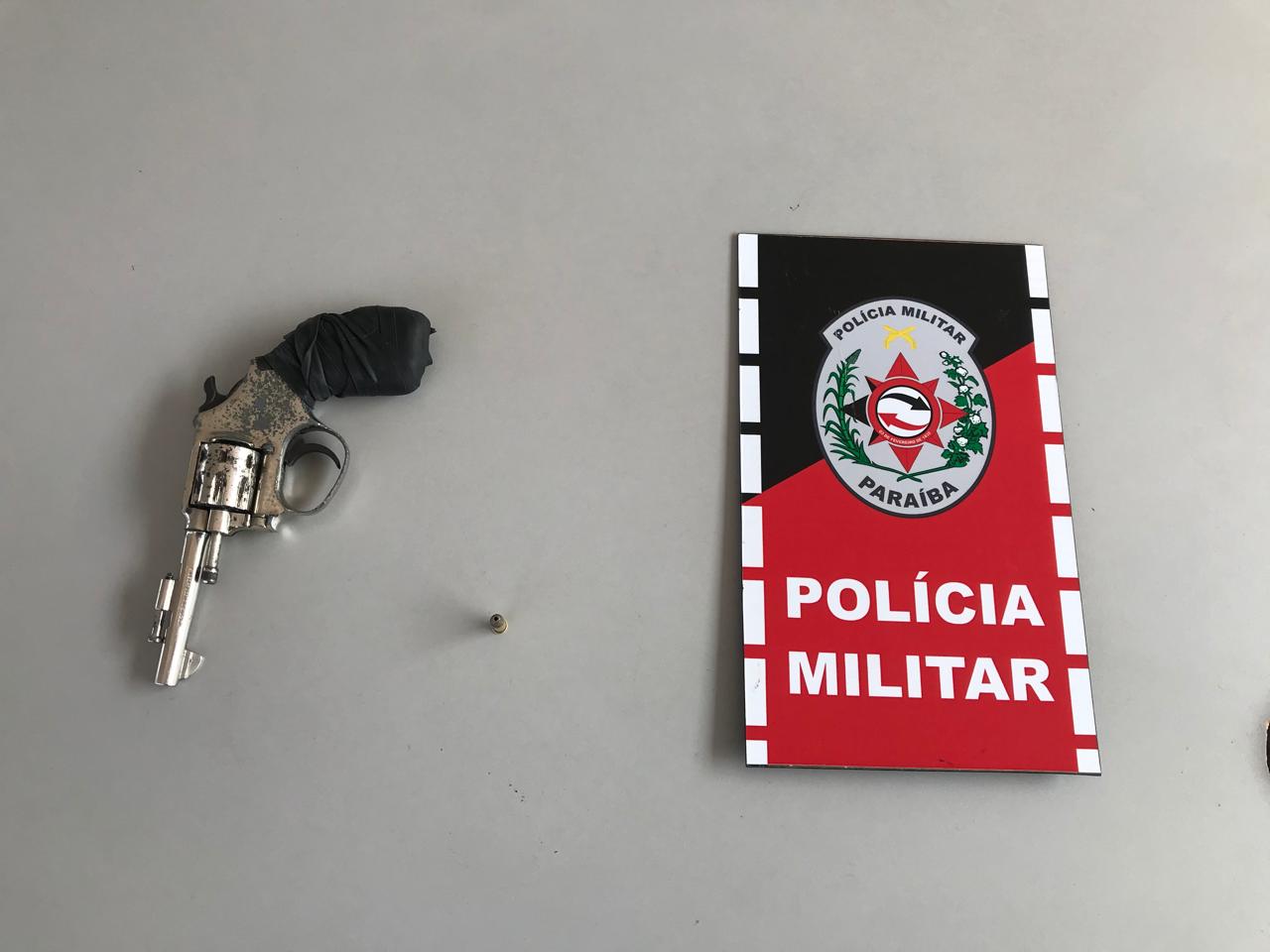 A guarnição iniciou diligências, localizou o indivíduo de 16 anos, e a arma de fogo, *um revólver calibre 22, com uma munição de mesmo calibre*.