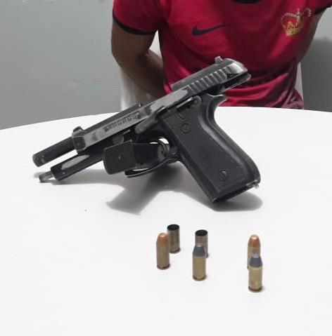 Policiais Militares do *14º BPM*, prenderam na noite de hoje (26), por volta das 20h30min, nas proximidades do Conjunto Frei Damião em *SOUSA*, A.C.R.S. (21 anos), bem como apreenderam uma Pistola Marca Taurus, Calibre .40, com (04) quatro munições intactas e (02) duas deflagradas.