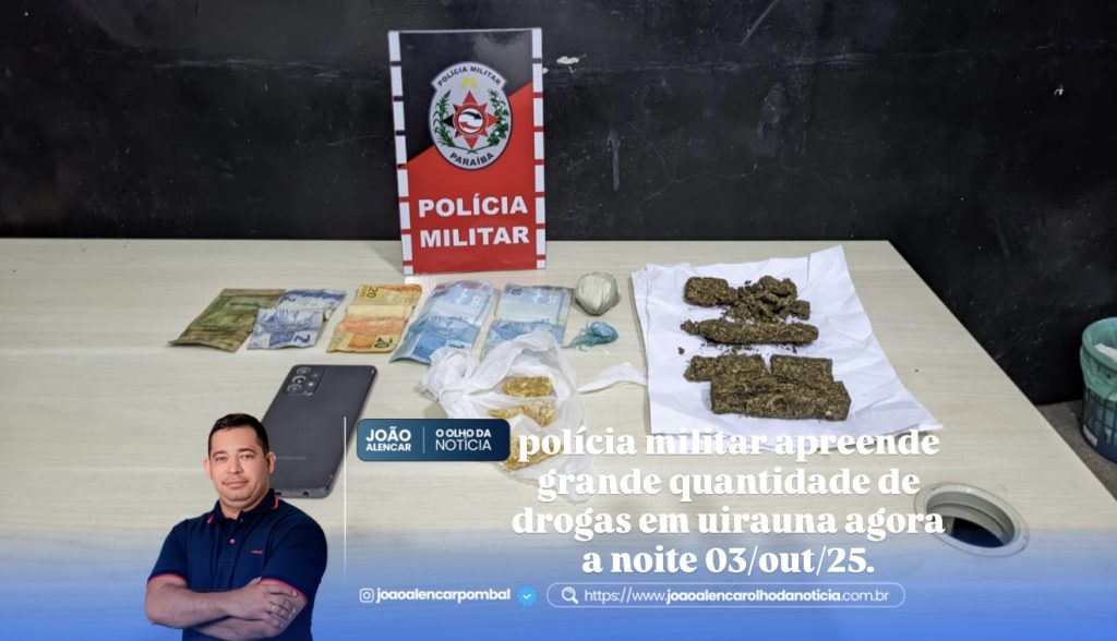 Uma operação sob o comando do novo comandante da 2ª Cia em Uirauna-PB, Major Elton, apreendeu uma grande quantidade de drogas e dinheiro na cidade de UIRAUNA. Uma pessoa foi presa e um veículo apreendido. A operação contou com Guarnições da 2ª Cia/6º BPM e do ROTAM. Entre as drogas apreendidas haviam porções de maconha, cocaína e crack.