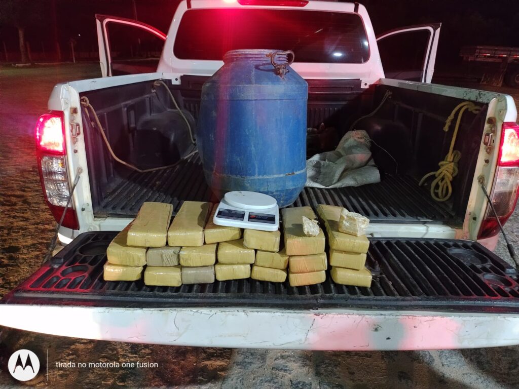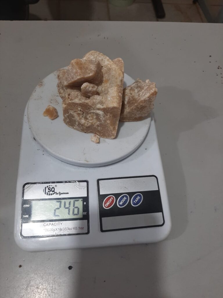 As Guarnições estavam a procura de um suspeito de praticar tráfico de drogas, quando durante as buscas nos locais frequentados pelos suspeito, encontraram uma quantia de vinte tabletes de substância análoga a maconha, 250g de substância análoga a crack e ainda uma balança de precisão.