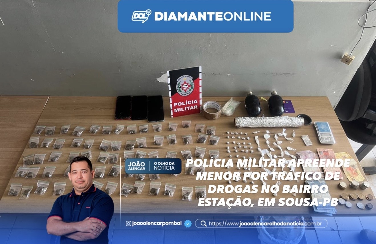 Na manhã desta quinta-feira, 13 de novembro de 2025, a guarnição Águia 03 do 3º Esquadrão ROTAM apreendeu um menor de idade por tráfico de drogas no bairro Estação, em Sousa-PB. Após denúncias apontando um imóvel usado como ponto de venda de entorpecentes, os policiais visualizaram uma mulher com uma criança no colo que, ao notar a chegada da ROTAM, alertou sobre a presença policial e entrou rapidamente na residência. Durante a abordagem, foi encontrado no interior do imóvel o adolescente que no momento da ação embalava drogas sobre a cama.
