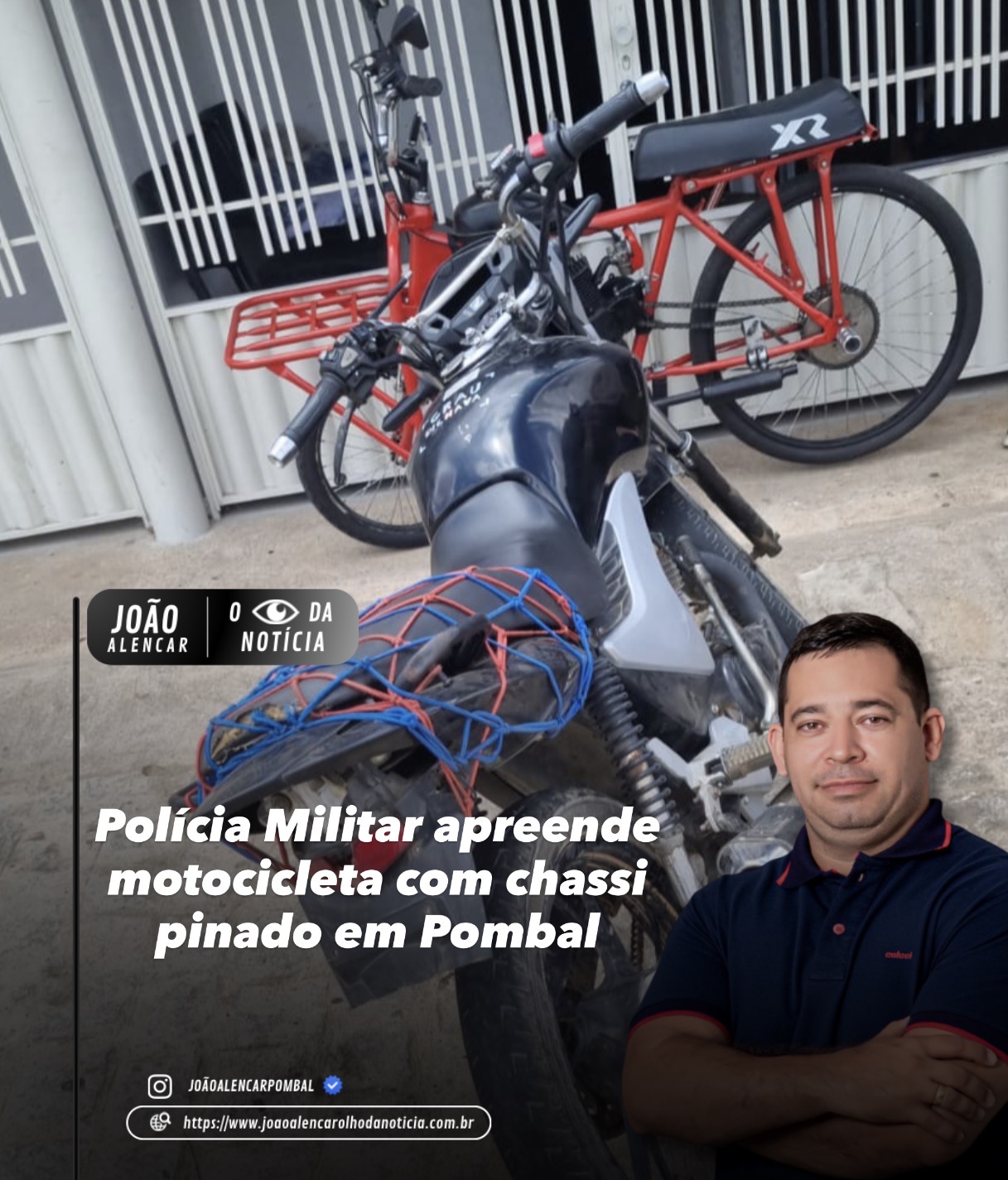 Na tarde desta data, durante patrulhamento ostensivo, uma guarnição da Polícia Militar percebeu uma motocicleta trafegando em alta velocidade e produzindo poluição sonora em via pública, no município de Pombal.