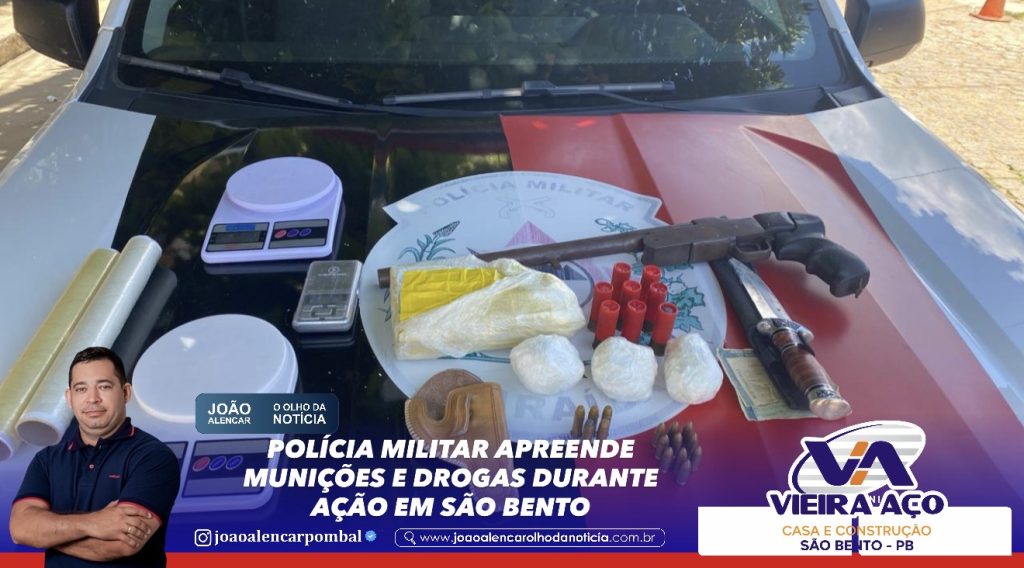 Durante patrulhamento no bairro São Bentinho, em São Bento, policiais militares do 12º Batalhão realizaram uma ação que resultou na apreensão de munições e entorpecentes em uma residência apontada por denúncias como local de tráfico de drogas.