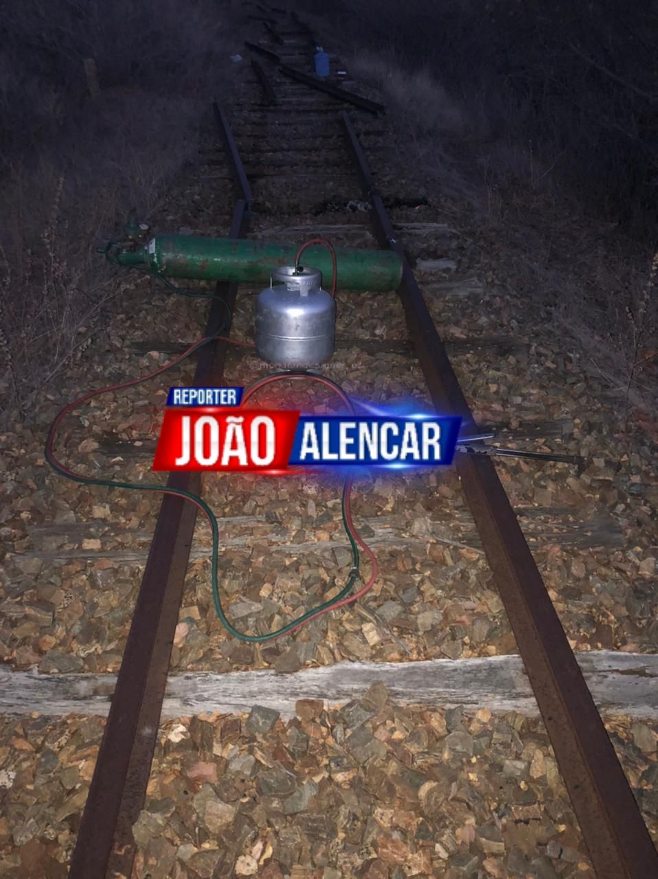 Foi feita incursão na localidade, onde constatou-se que havia um aparelho de maçarico, um botijão de gás, um cilindro de oxigênio, e algumas ferramentas que estavam sendo utilizadas na tentativa de subtração dos trilhos.