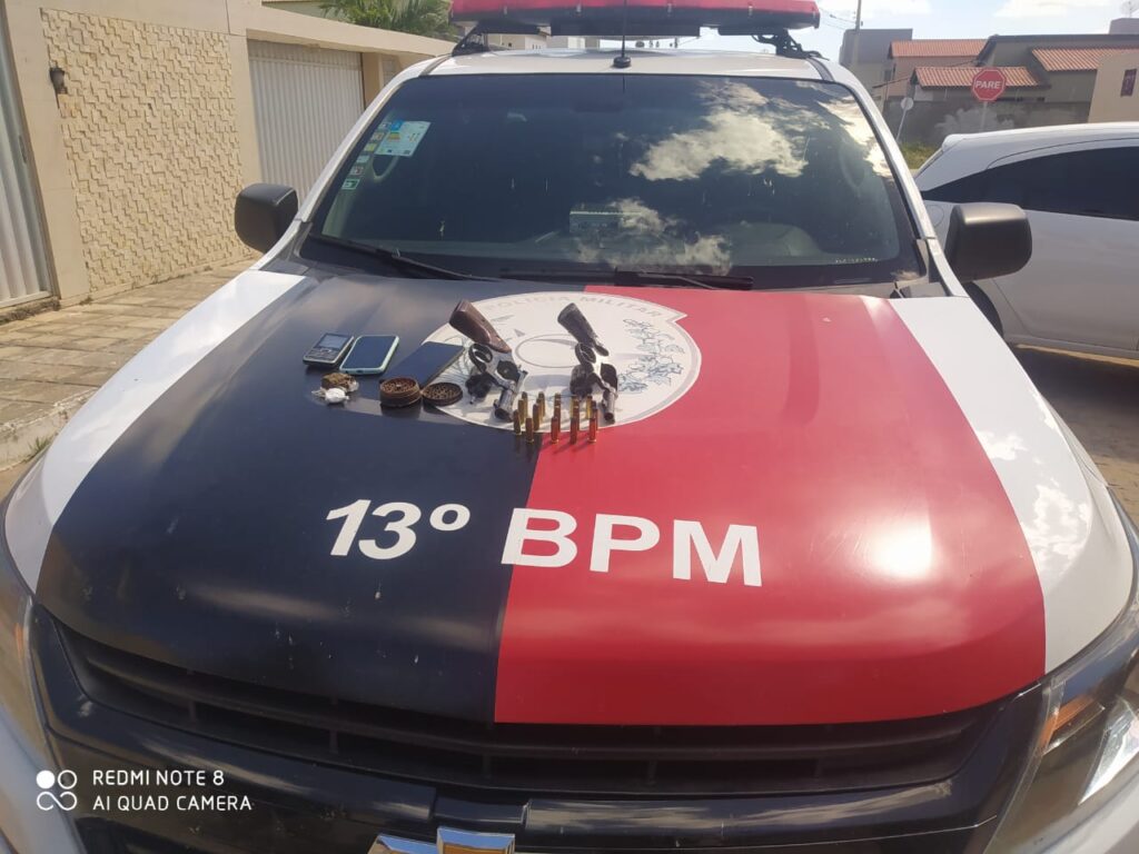 No local da prisão, Condomínio dos Baião, Centro, Itaporanga, PB, foram encontradas, duas armas de fogo com numerações raspadas, sendo dois revólveres Taurus, calibre 38 mm, 19 (dezenove) munições intactas e pequenas porções de cocaína e maconha.