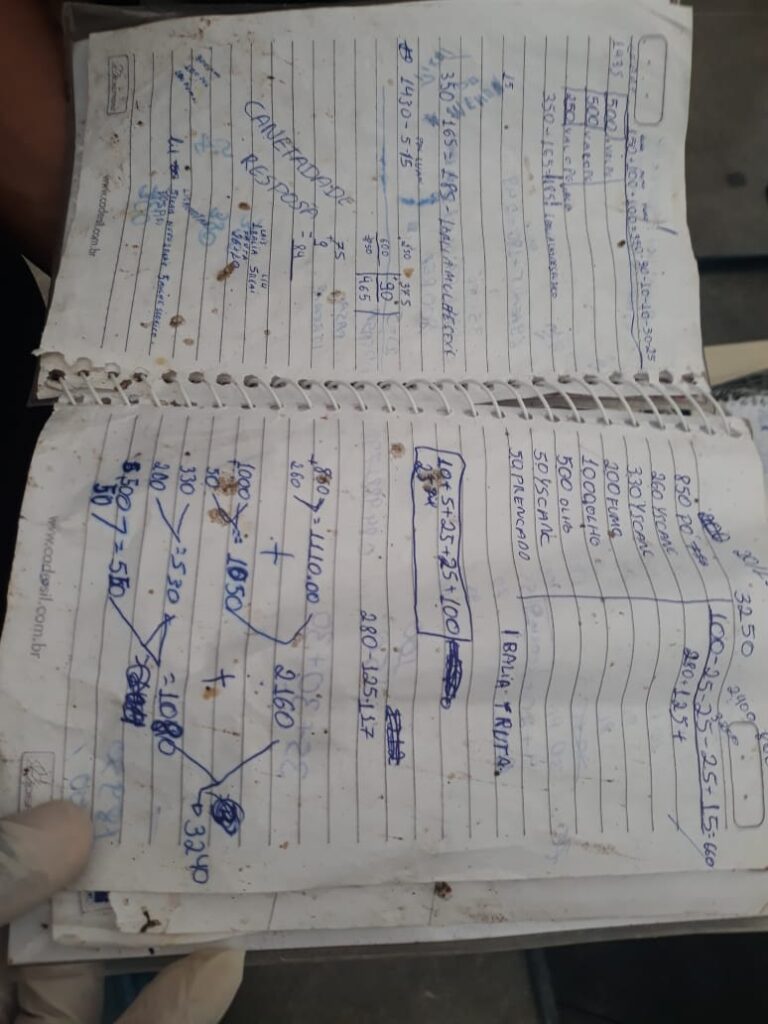 *- duas cadernetas com anotações referentes ao tráfico.*