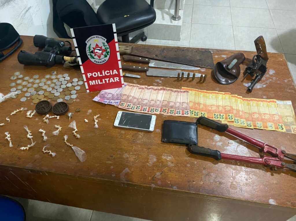 Aproximadamente às 21h00min deste dia 03.04.2021, as guarnições do CPU, Radio Patrulha e Força Tatica efetuavam rondas pelas ruas de Itaporanga relacionadas à OPERAÇÃO PREVINA-SE. As guarnições foram acionadas por pelo COPOM para atender uma possível ocorrência de tráfico de drogas em uma residência. Estas se dirigiram à residência, após uma varredura no local, foi detectado que na área do imóvel, haviam quatro elementos consumindo drogas provavelmente maconha, visto que exalava forte odor no local; ao avistarem as guarnições adentraram no domicílio, e como o portão encontrava-se semiaberto as guarnições conseguiram alcança-los, e já no interior da casa, fora encontrado um revolver calibre .38 com 06 munições intactas, 75 involucros de uma substancia semelhante ao crack, 02 involucros de uma suma substancia semelhante a maconha, binóculos, 01 facao, dinheiro trocado, etc . Salvo melhor juízo, entende-se que ali funcionava uma “boca de fumo”, também se verificou a existência de crime ambiental, previsto na Lei 9.605/98, em razão das apreensões das aves silvestres descritas acima. Todos foram conduzidos à Delegacia de Polícia Civil local, onde, juntamente com todo material apreendido, foram apresentados à Autoridade Policial Civil plantonista, a quem cabe conhecer, analisar e adotar as demais medidas que venham a ter relação com o caso.