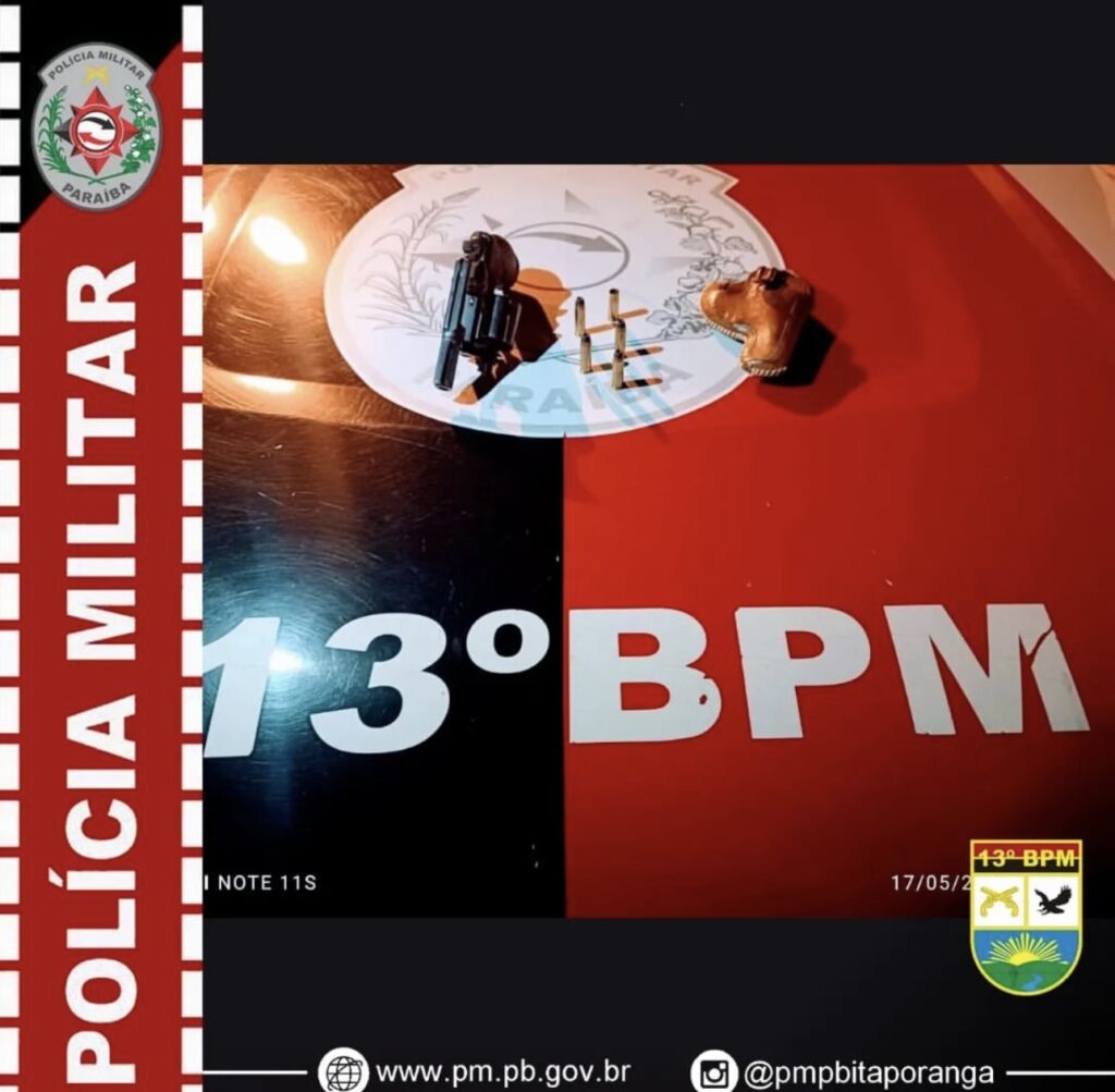 No fim da noite de ontem (17/05), após receberem uma informação sobre a ocorrência de um disparo de arma de fogo no Conjunto Chagas Soares, Policiais Militares do 13° BPM dirigiram-se ao local indicado, onde encontraram T. de O.M. em atitude suspeita dentro de um veículo.