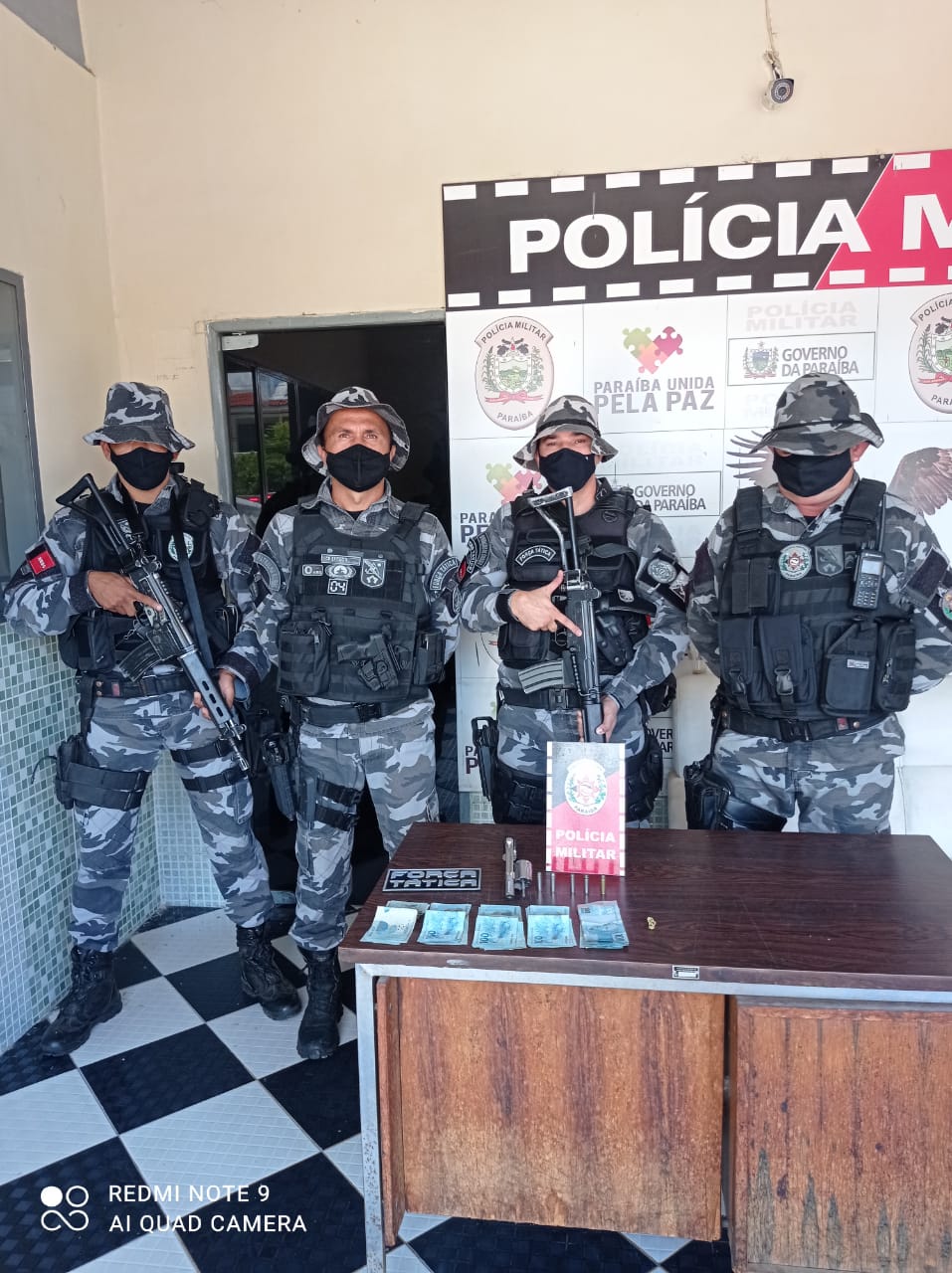 A guarnição da Força Tática pertencente a 2ª Companhia do 13 BPM em rondas na cidade de Santa Inês-PB nas imediações da divisa pb/pe realizava abordagens a veículos visando coibir o tráfico de armas e drogas na região, quando ao se aproximar de um veículo polo de cor branca com 5 ocupantes, os policiais visualizaram no momento em que um dos ocupantes do veículo jogou um objeto pela janela. Foi dado ordem de parada ao condutor do veículo e este fora realizado abordagem. Em seguida feito a vistoria no interior do veículo onde foi encontrado uma quantia de 5.000.00(cinco mil reais), e ao fazer a busca no matagal onde foi lançado o objeto, foi encontrado 01(um) revolver calibre 38. Que ao indagar os ocupantes do referido veículo de quem seria a arma encontrada o menor acima citado assumiu ser o proprietário da arma. Que as partes envolvidas foram conduzidas para DP de Itaporanga para as medidas cabíveis e providencias subsequentes.