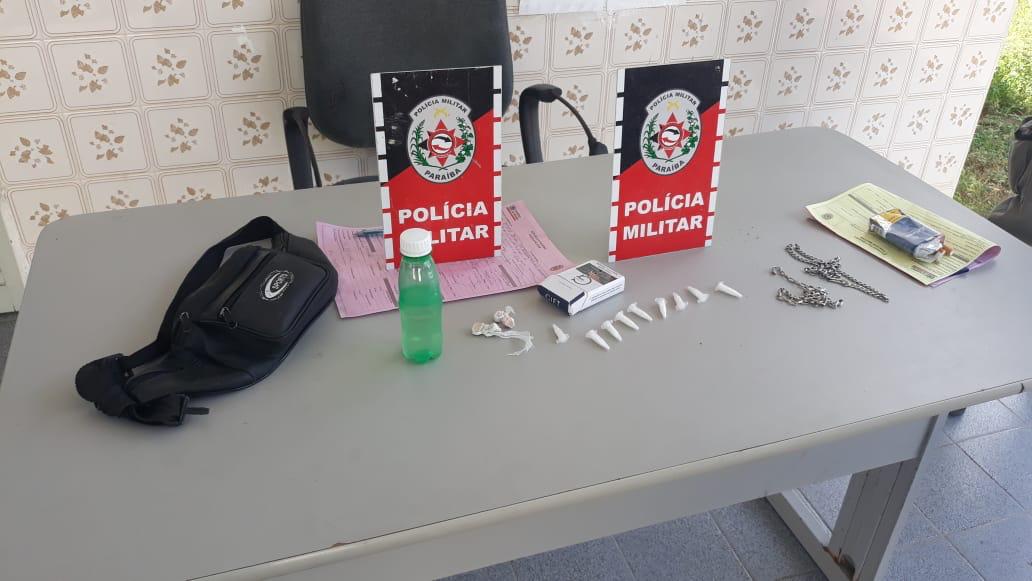 Policiais Militares da *3ªCIA/14º BPM*, durante abordagens na tarde de hoje (03), às 15h00min, no Bairro Populares em *POMBAL-PB*, apreenderam um adolescente em conflito com a lei, 16 anos de idade. No momento da busca pessoal foi encontrado com o mesmo 09 porções de substâncias análogas à cocaína, 04 de crack e uma garrafa pet contendo loló (substância entorpecente à base de éter, clorofórmio, cloreto de etila e essência de perfumes). Ato Infracional análogo ao Tráfico de Entorpecentes e Substâncias Afins.