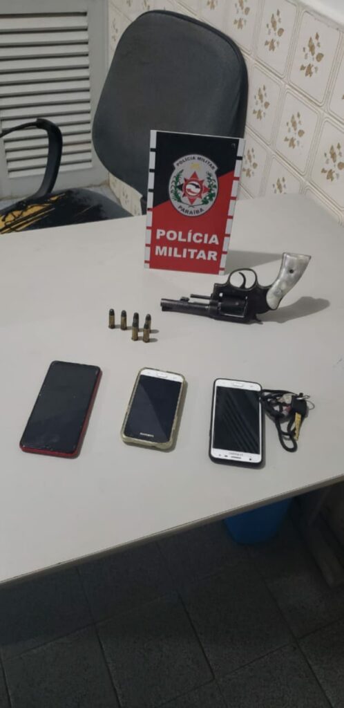 Na ocasião, dois individuos foram detidos com os três celulares roubados e um revólver calibre 38 utilizado no crime.