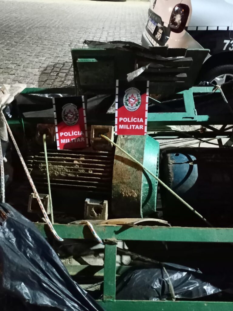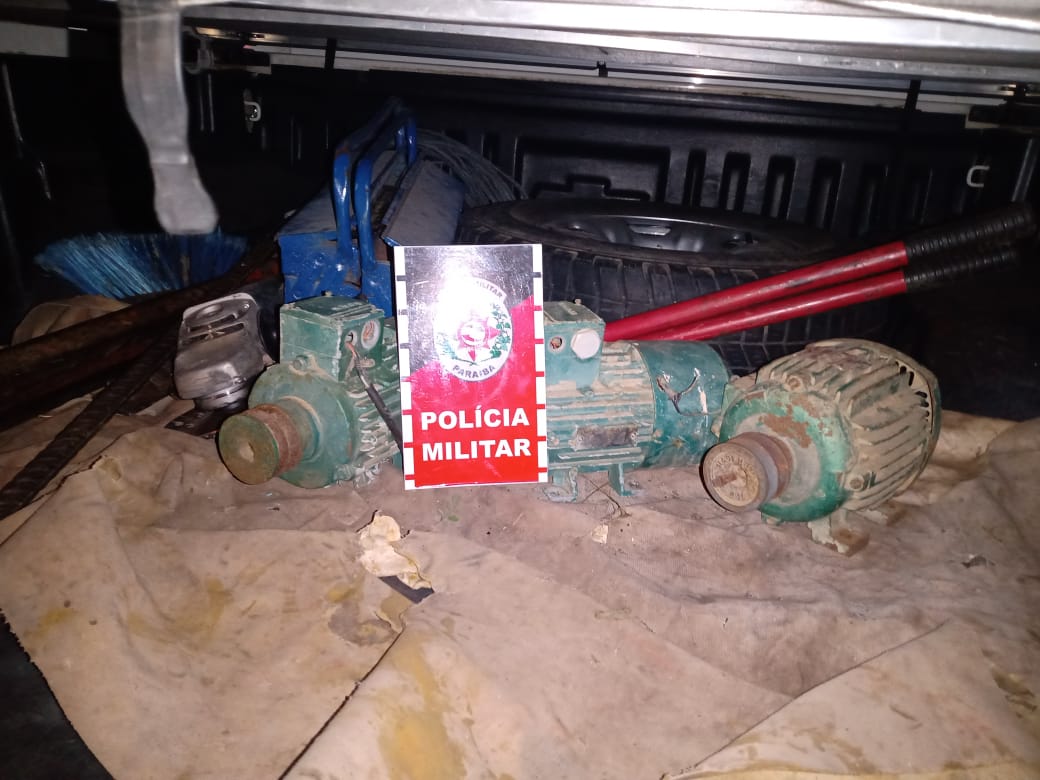 Todo o material que estava sendo roubado foi recuperado, sendo 02 alicates mecânicos, 01 caixa de ferramentas, 05 motores elétricos, 01 lixadeira elétrica e um reboque de carro placa