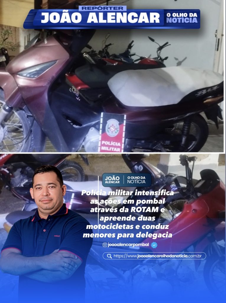 Na noite desta sexta-feira, policiais militares da ROTAM, lotados na cidade de Pombal, abordaram e conduziram para delegacia dois menores que estavam conduzidos motocicletas.