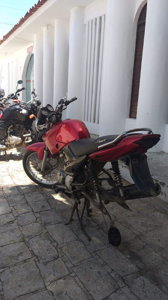 Já o segundo veículo foi encontrado abandonado, no dia de hoje, 03.04.21, por volta das 8h40min, pela guarnição de Trânsito comandada pelo 1° Sgt Rodrigues, após este receber uma denúncia anônima que existia uma motocicleta abandonada na zona rural da cidade de Sousa-PB. Ao chegar ao local foi constatado que a motocicleta Yamaha Factor YBR 125 cor vermelha, ano 2008, placa MOK-5345/PB era produto de roubo/ furto.