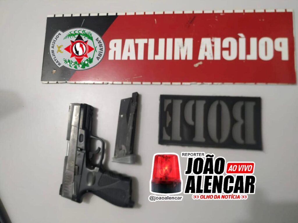Na noite desta Terça-feira (03), durante rondas na cidade de Sousa, militares do BOPE após visualizarem em atitude suspeita uma moto de entregas de comida, realizaram abordagem policial quando foi localizada com o acusado um simulacro de pistola modelo 24/7 da Taurus.