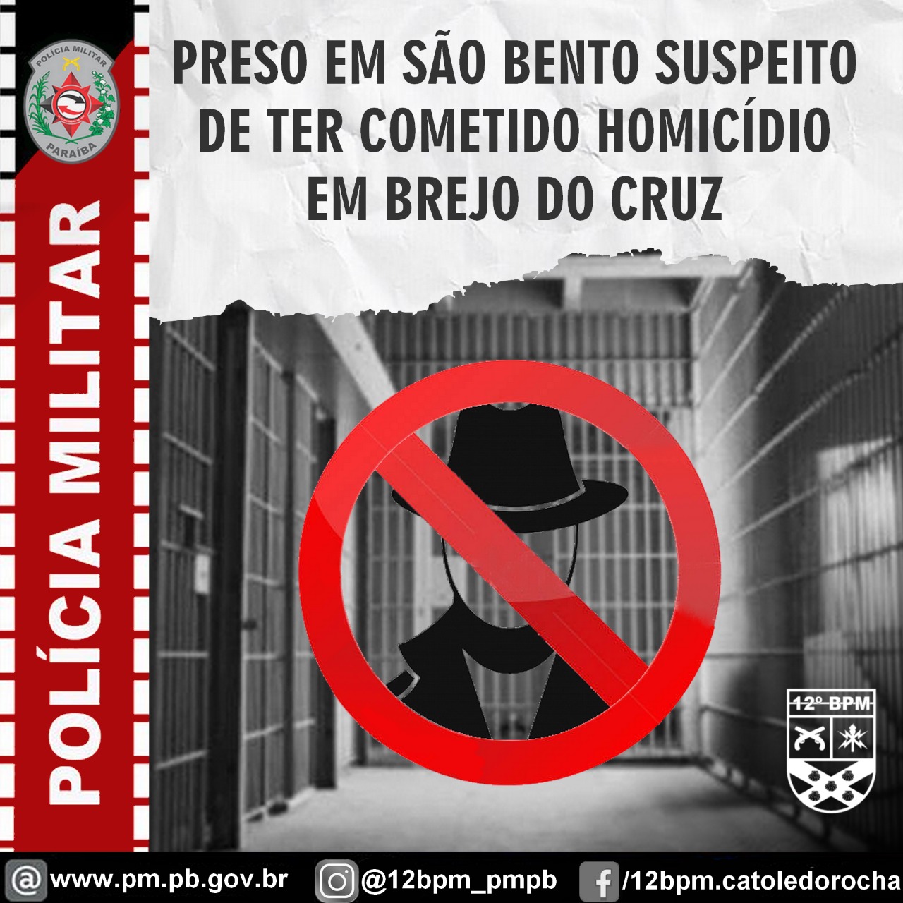 Nesta sexta-feira (18 de dezembro) policiais militares da 3ª Companhia do 12º Batalhão prenderam um suspeito de ter cometido um homicídio no início do mês em Brejo do Cruz. Contra o suspeito de 22 anos de idade, exitia um Mandado de Prisão Preventiva.