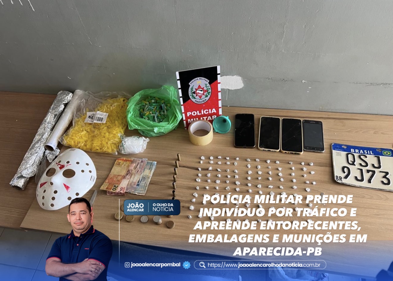 Neste domingo, 09 de novembro de 2025, por volta das 12h30min, a guarnição Águia 05 do 3º Esquadrão ROTAM realizava rondas na cidade de Aparecida-PB quando foi informada por populares sobre um possível ponto de venda de drogas nas imediações da saída da cidade. Ao chegar ao local indicado, os policiais visualizaram um indivíduo em frente a uma residência, sendo realizada de imediato a abordagem.