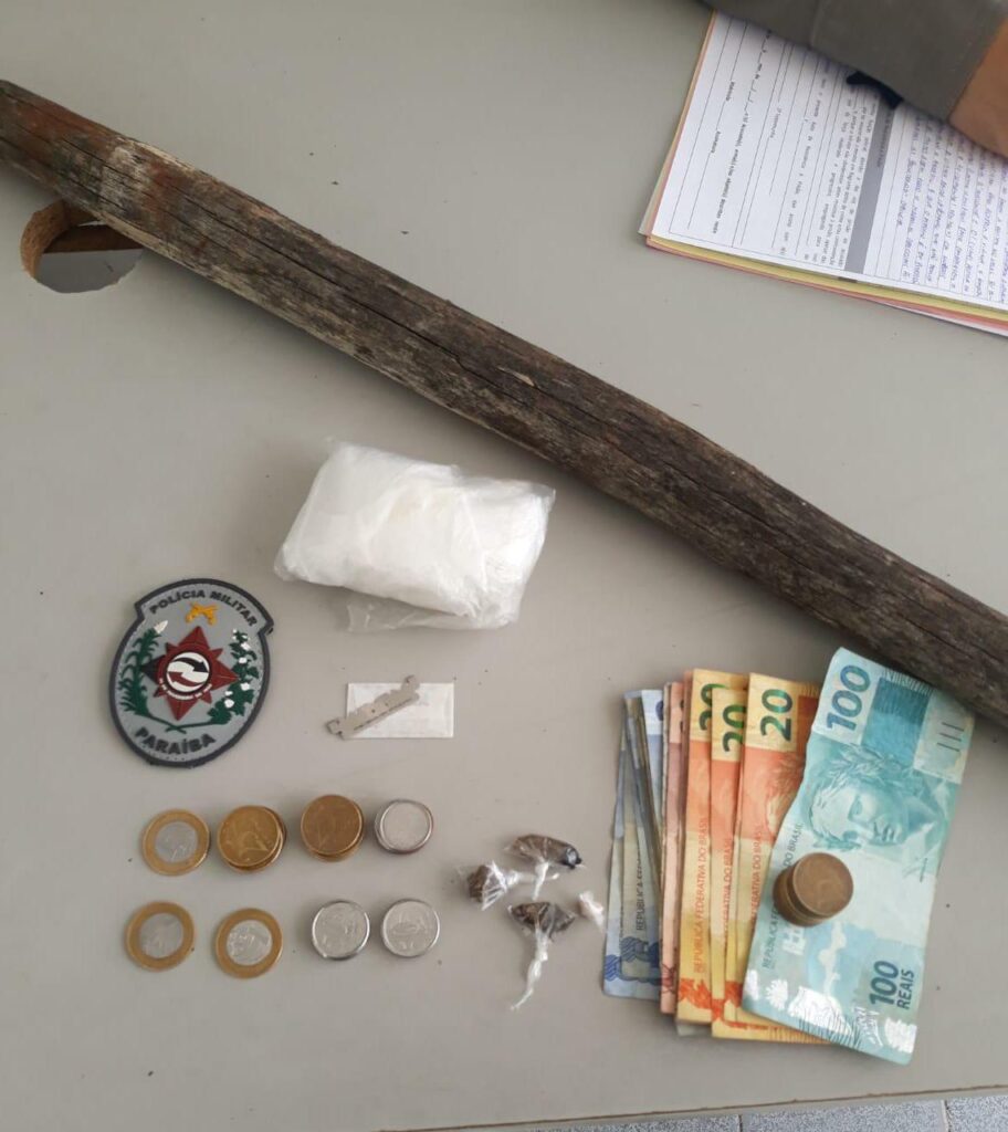 Policiais Militares da 3ªCIA/14ºBPM, na manhã de hoje (10), por volta das 08h00min, prenderam um suspeito de 24 anos e apreenderam determinada quantidade de substância análoga à maconha e crack. A prisão ocorreu no Bairro Pereirão em *Pombal-PB*.