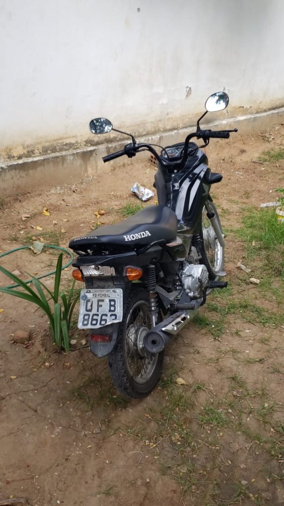 Por volta das 12h00min desta sexta feira, a policia militar de Pombal recebeu a informação de quem seria o autor do furto de uma motocicleta POP 100 placa QFB 8663, acontecida nesta madrugada.
