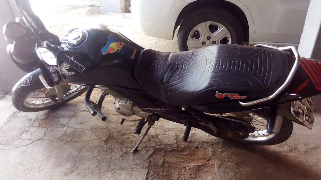 *HISTÓRICO:* Por volta das 11h50min da corrente data a guarnição da Força tática ao realizar rondas ostensivas no bairro da Liberdade, desta cidade se deparou com a testemunha conduzindo a referida motocicleta, em companhia do senhor FRANCISCO BENEDITO DA SILVA. Que ao fazer a abordagem e averiguar a procedência da moto, verificou-se tratar de veículo roubado. Que a consulta foi feita pelo COPOM através do programa INFOSEG, usando o número do motor como dado do veículo, pois o chassi encontra-se “raspado”, ilegível e a placa anterior era QFA 9445 foi refeita, transformando o “Q” em “O” e o primeiro “4” em “1”, resultando em OFA 9145. Primeira versão mostra “veículo roubado, enquanto a segunda mostra um VW FOX. Consultando pelo número do motor resultou em “veículo roubado” de placa ¬¬¬¬¬¬¬KHT 1384. Que foi dada a voz de prisão e o condutor e conduzido à delegacia juntamente com o veículo e entregues ao delegado de plantão.