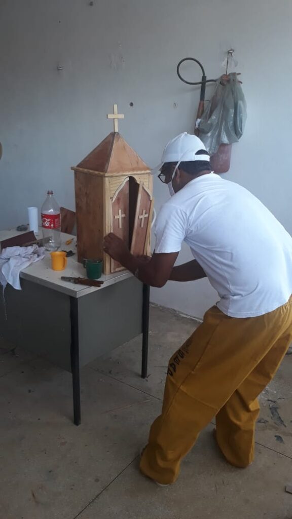 destacando com seus projetos de Ressocialização implantados na Unidade. Um deles e a Mercenária “Nova Esperança” que atualmente vem produzindo peças e móveis rústicos utilizando madeiras reaproveitada transformando paletes que iriam ser descartados na natureza e são transformandos em lindas peças pelos apenados que estudam no projeto. Para o diretor titular Charles Martins esse projeto tem não só a oportunidade de ocupação e remissão da pena mas também um papel ecológico ajudando na questão ambiental e promove como todos os demais projetos disciplina e redução de ilicitudes na Unidade. Fonte João Alencar