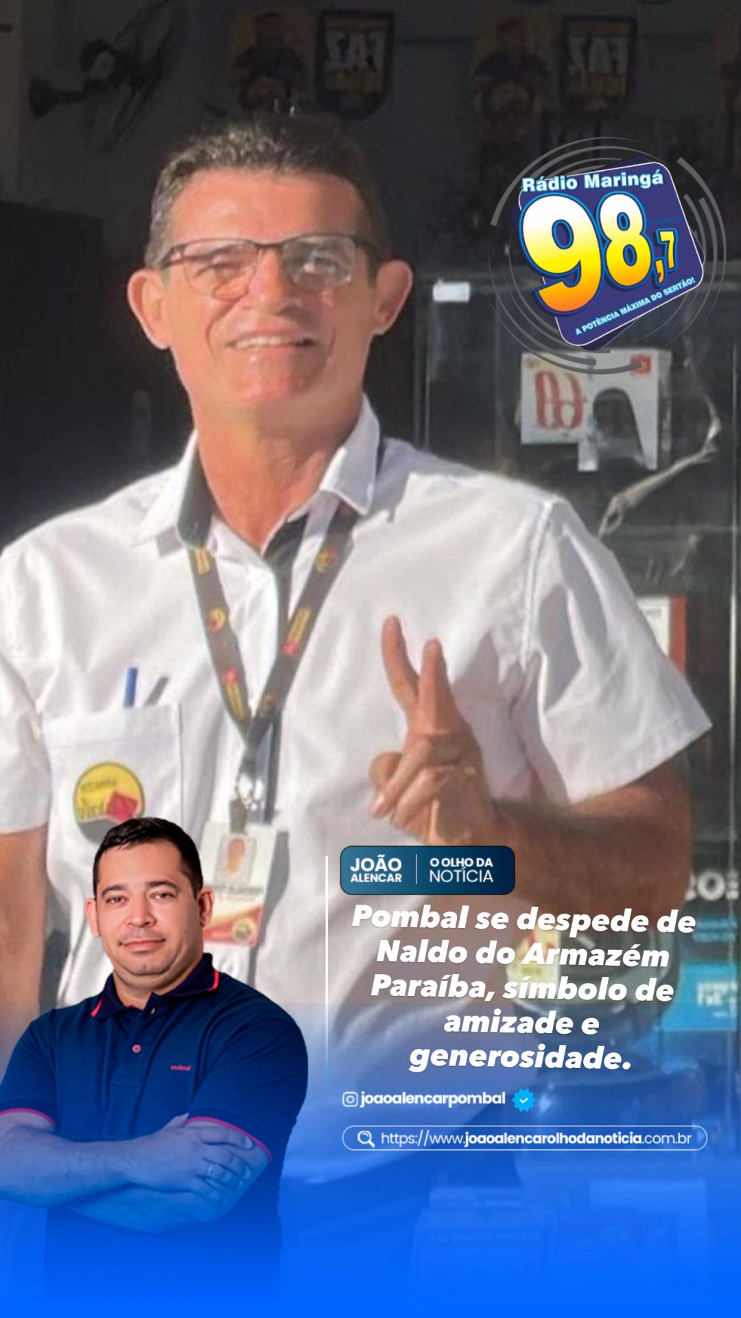 Naldo era muito querido por toda a população de Pombal, conhecido pelo seu carisma e pelo trabalho de muitos anos como subgerente do Armazém Paraíba. Sempre disposto a ajudar, nunca mediu esforços para estender a mão a quem precisasse.