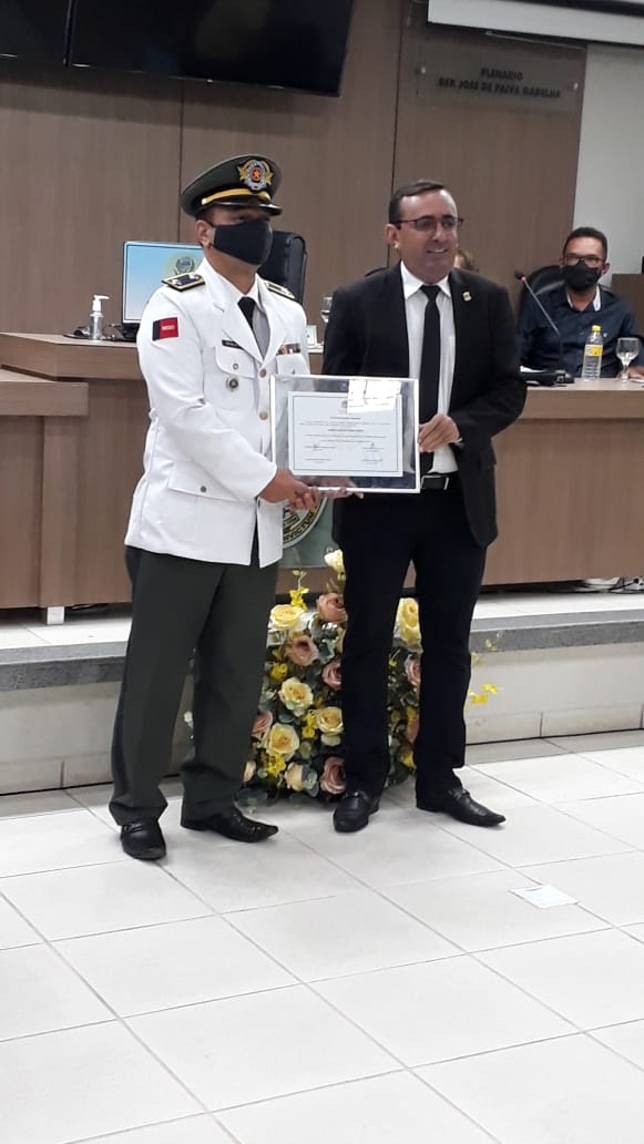 Nesta última sexta-feira, dia 27/08/2021, na vizinha cidade de Sousa-PB, foi conferido e entregue na Câmara Municipal em Sessão Solene, o Título de Cidadão Sousense ao 1° Tenente ALFREDO Alves de Oliveira Junior.